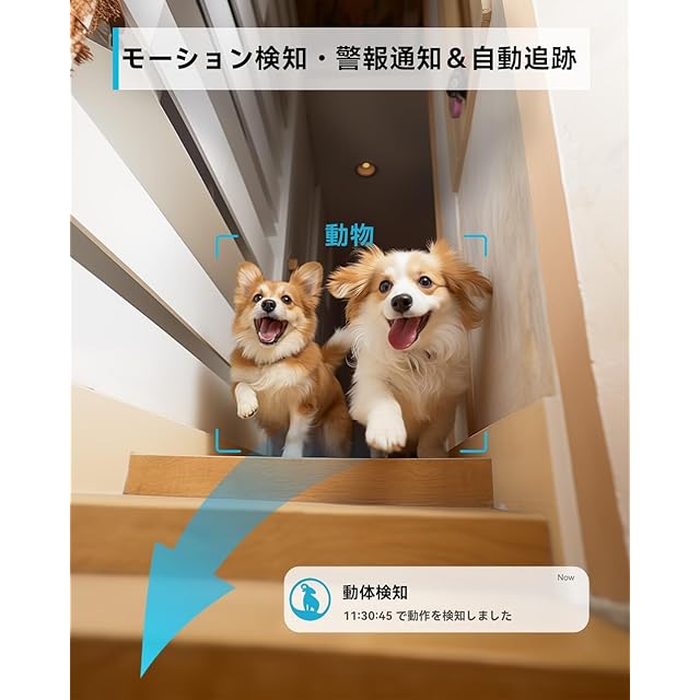 【AIモーション検知・警報通知・自動追跡】❶モーション、サウンド、人体認識の検知機能が搭載され、「blurams」アプリで「通知権限」をオンにすると、スマホから警報通知が届けます。アプリで「自動追跡」をオンにすると、防犯カメラは動きによって水平・垂直に見回りして自動追跡できます。❷先端なAIセンサー(有料)が搭載され、高齢者介護、ペット見守り、車両検知もあります。