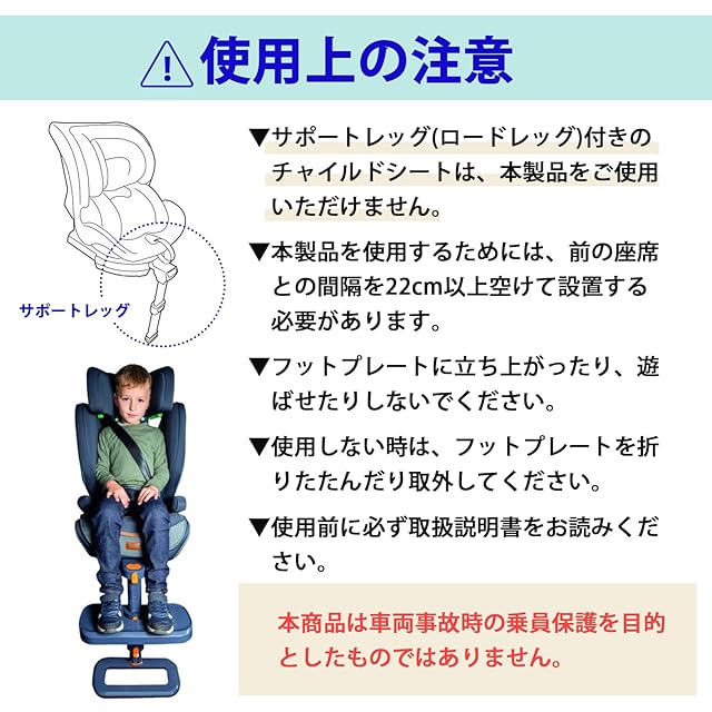 【ISOFIX搭載車・非搭載車にも取り付け可能!】 ISOFIX搭載車・非搭載車にも取り付け可能です。 前席との間隔を22cm以上空けてご使用ください。 ただし、サポートレッグつきのチャイルドシートは使用不可です。