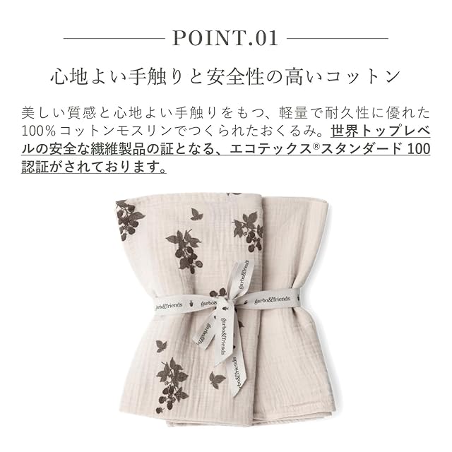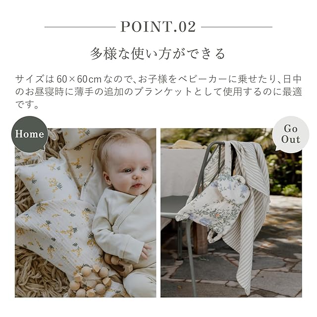 軽くて風通しがよく、吸水性にも優れており使うたびに柔らかく優しい肌触りで赤ちゃんを快適に包んでくれます。