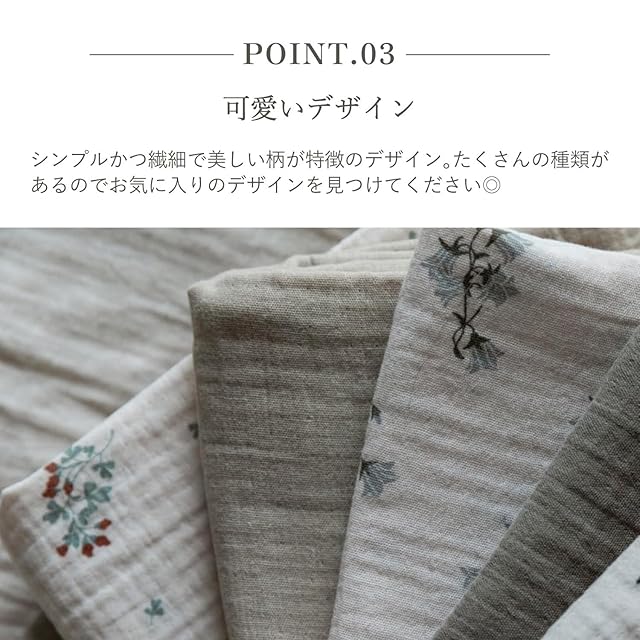 素材には、モスリンコットンが使われており耐久性に優れているため何度、洗っても丈夫です。