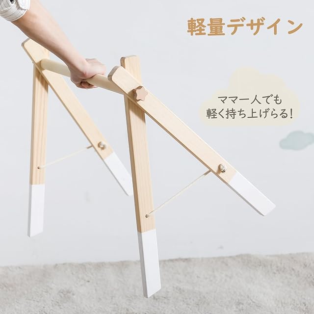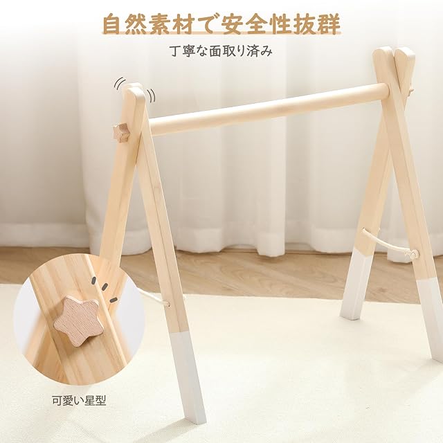 ★【理想な贈り物】お子様の安全を守る機能性と、デザイン性も兼ね備えた完璧な新生児おもちゃです。ナチュラルカラーなのでどの家にも合い、インテリアの邪魔になりません。ハンガーラックからベビージムまで、成長に合わせって赤ちゃんと一緒に成長していきます。