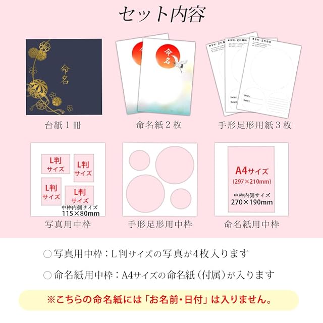 中枠3枚(命名書用/写真用/手形・足形用)