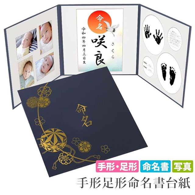命名書 台紙 手形 足形 赤ちゃん 手形 足形 写真 お名前がすべて入る【まり 紺「命名」ゴールド箔 L版セット】 人気 可愛い かわいい 手作り 飾る 内祝い シンプル 赤ちゃん命名書台紙 出産祝い 記念品 命名紙 名づけ 命名 祖父母 プレゼント 自分で書く オーダー 子供 名入れ 用紙 お七夜 日本製(まり 紺63)