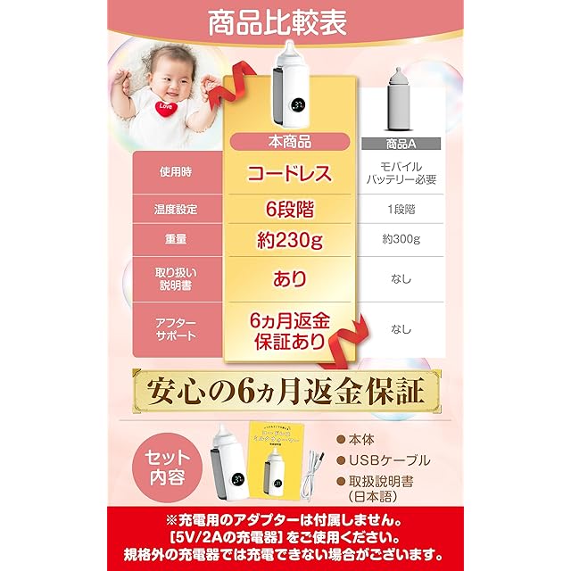 6ヶ月保証 助産師推奨 コードレスミルクウォーマー バッテリー内蔵 意匠権出願中【Peopensee】持ち運び ポータブル 調乳 ミルクウォーマー 哺乳瓶ポーチ 哺乳瓶ウォーマー