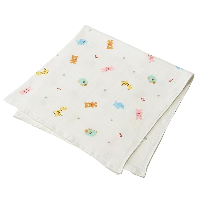 ミキハウス ホットビスケッツのベビーギフトセット。 ガーゼバスタオルはかわいい総柄のデザイン。 表がガーゼ、裏がパイル地の正方形バスタオル。 赤ちゃんを包みやすい大きな正方形なので、 バスタオルとしてだけではなく、おくるみとしても使いやすい形です。