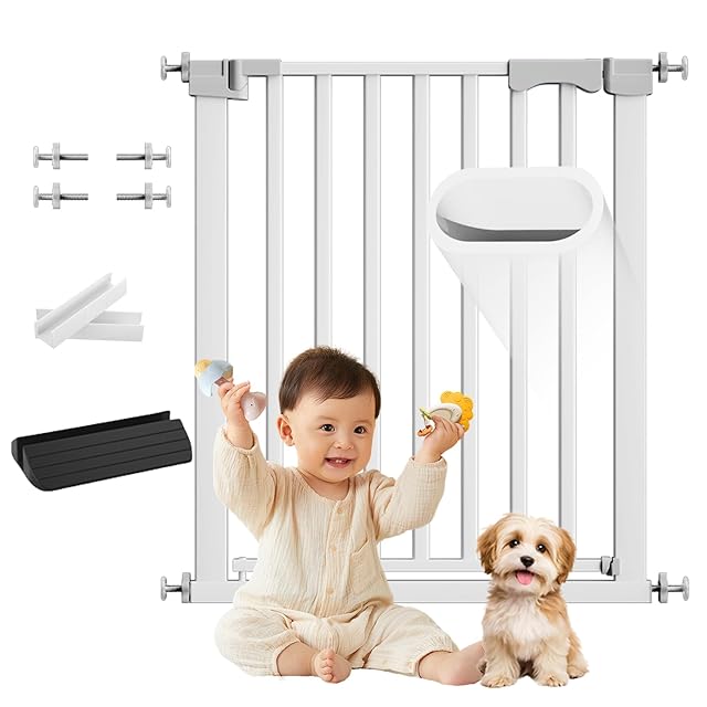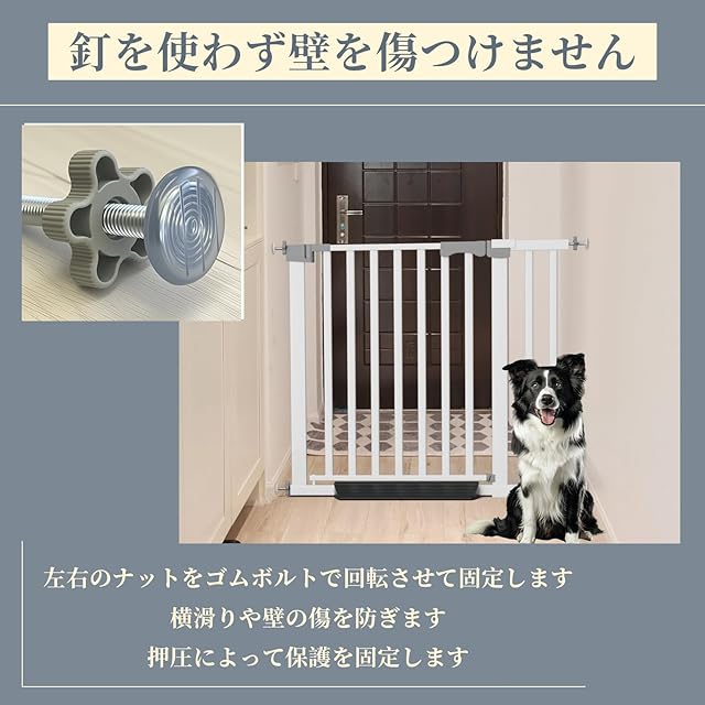コブキBUJI ベビーゲート ハイタイプ ペットゲート 突っ張り式 置くだけ 高76cm 幅69-153cm 幅広 厚くスチールゲートドア付き 階段 玄関 台所 犬猫脱走防止 安心安全ダプルロック機能 前後90°自動開閉 防蹴パッド&補強溝&固定金具付き