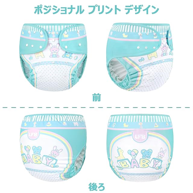 LittleForBig大人用布おむつカバー 可愛い絵柄【パレードをしているベビー】調節可能なウエストと長さ スナップ付 漏れ防止 通気性 洗濯可 M [並行輸入品]