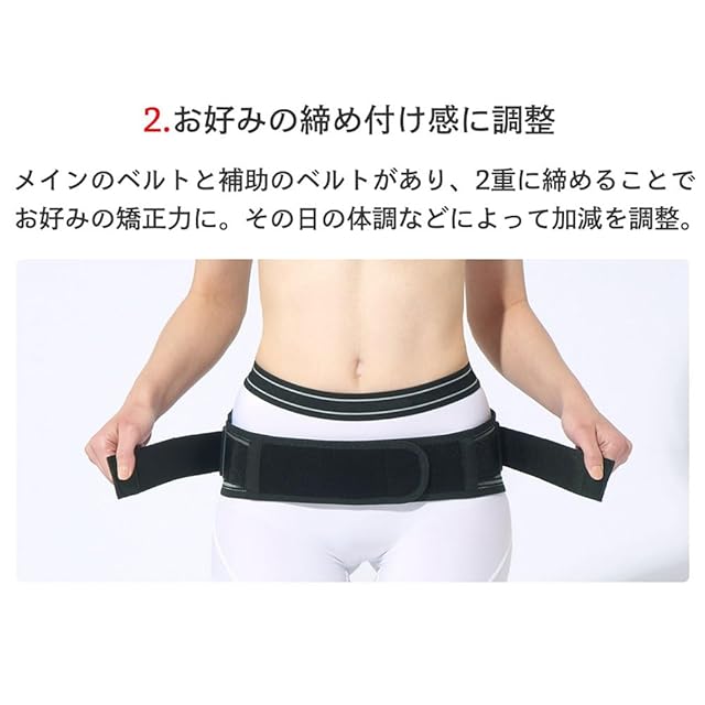 補助ベルトには光沢の有る「ブラックテグスコールゴム」からなる、引き締めの強さを調節できる滑車型2重式補助ベルトを採用。女性や子供でも、小さな力で強力固定でき、固定力のアップに繋がりました。【特許取得済】