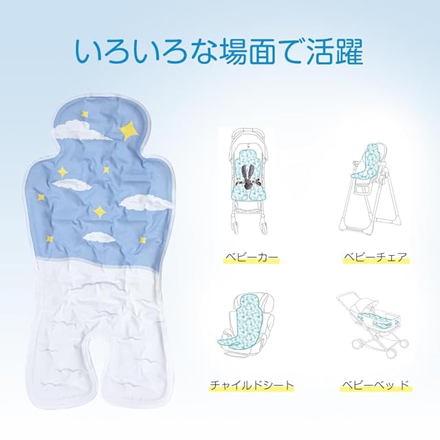 【広い適用】冷却クールマットはベビーカーやチャイルドシート、ベビーチェアなどの使用だけじゃなくて、夏のベビーベッドマット、授乳マットなどとしても様々なシンで大活躍です。ふわふわクッションだからお布団の上に敷いても寝心地抜群、お昼寝タイムも快適に。