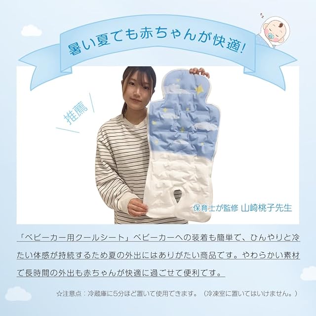 【ベビーカー 保冷シート】最近の夏はとにかく暑いから赤ちゃんと一緒のおでかけは大変。体温調節がうまくできない赤ちゃんは、汗をかきすぎてあせもになったり、熱中症が心配…。体感温度を3~5℃下げることができ、赤ちゃんが快適な温度で移動できるように涼しく、夏に欠かせない保冷シートです。