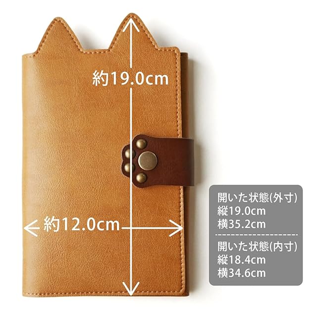 3つ折りに畳んだ状態(外寸)縦19cm×横12cm、開いた状態(外寸)縦19cm×35.2cm、開いた状態(内寸)縦18.4cm×34.6cm