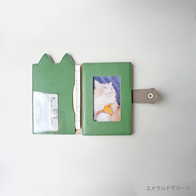 [やさしい靴工房 Belle & Sofa] 母子手帳ケース ねこ 猫 ネコ お薬手帳 保険証 診察券 病院 通院 入院 カードケース 日本製 MEDIC (エメラルドグリーン猫)