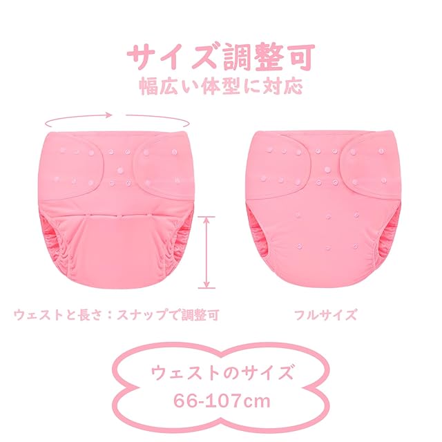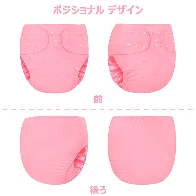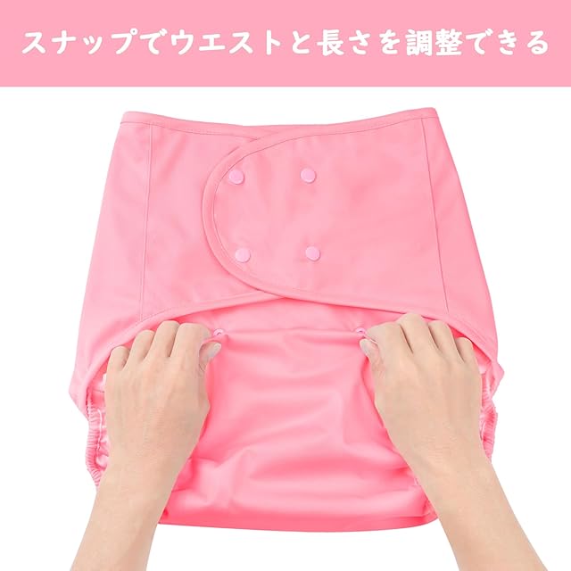 LittleForBig 大人用おむつカバー 【気楽なおむつカバー】 調節可能なウエストと長さ 無地 スナップ付 漏れ防止 通気性 洗濯可 ピンク