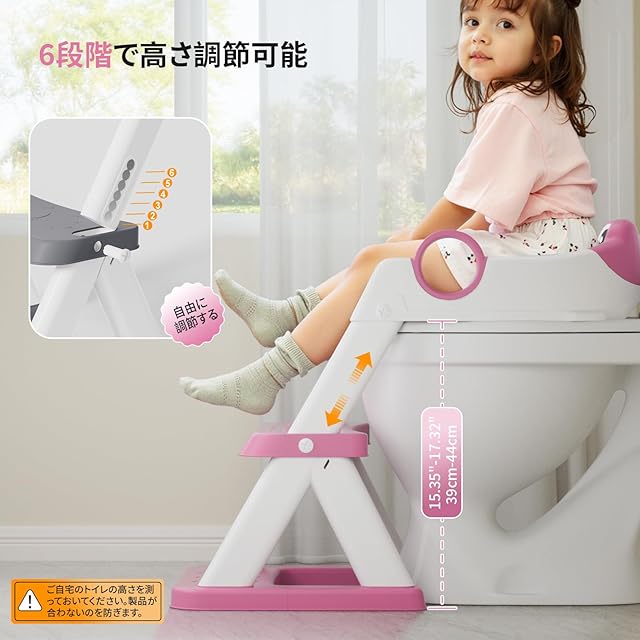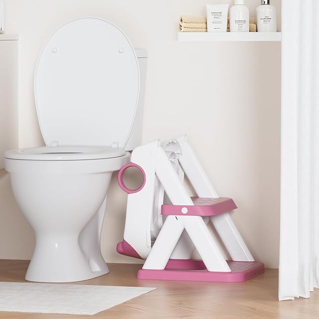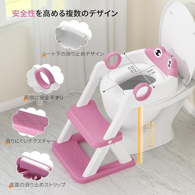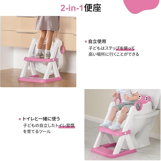 DEANIC トイレトレーニング用補助便座 折りたたみ式踏み台ステップ 高級PVCクッション付き 滑り止め設計 男の子女の子対応 子供用トイレ補助 軽量耐荷重 自宅適合率98% (ピンク))