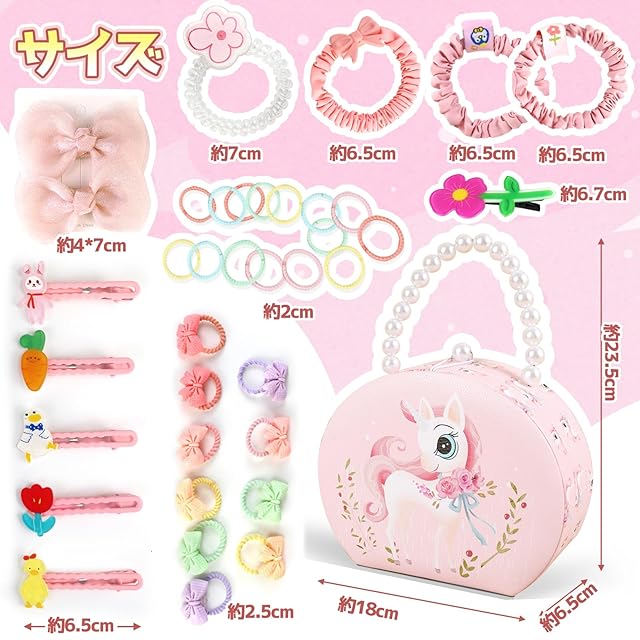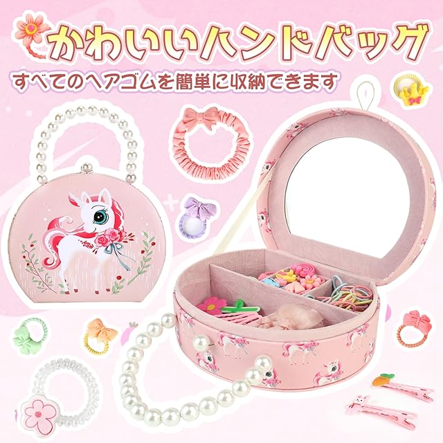 【収納バッグ付き】このバッグはただのバッグではありません!女の子の秘密基地です。内部は精巧に設計されており、様々なヘアアクセサリーを収納できるのはもちろん、鏡も付いています。ピンク色のバッグは甘いキャンディのように見た目も可愛らしく、一目で心を惹きつけます。