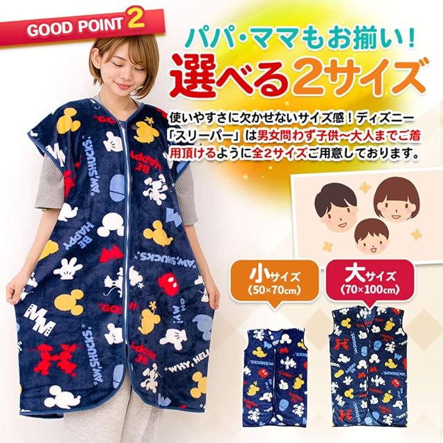 マイクロファイバー毛布で製造した スリーパー、子供用かいまき.ルームウェア 寝巻き 用としても大人気 Disney ミッキー ミニー のデザイン柄