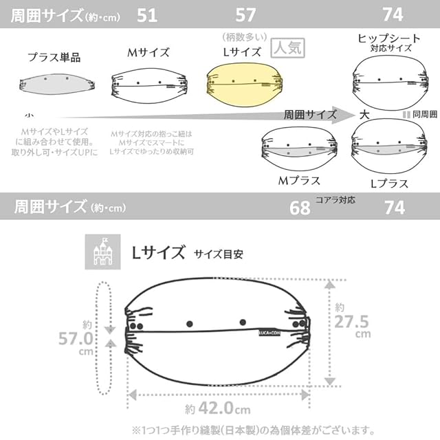 ◆[Lサイズ]:[平置き] 幅42cm 高さ27.5cm[周囲] 57cm