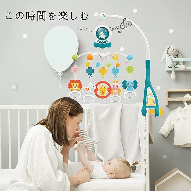 ♫【夢のような回転】赤ちゃんが寝る前に太鼓の回転を見たり、子守歌を聞いたりして赤ちゃんを眠りに誘うことができます。363度回転の回転式ガラガラメリー、赤ちゃんの注意を引き、赤ちゃんの視力を鍛えるのに役立ちます。きれいな造形と色彩は小さい時から赤ちゃんの視覚審美眼を育成することができます。