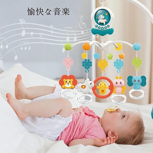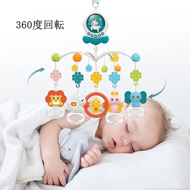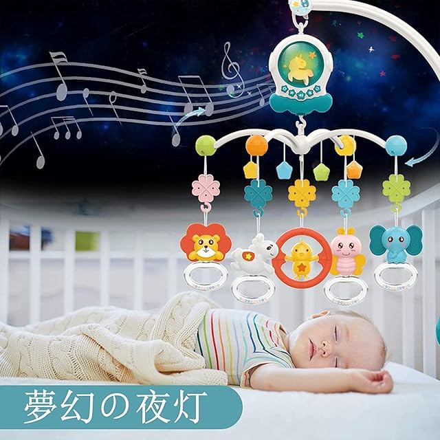 OMATA ベッドメリー ベビー用ベッドメリー・モビール 0-1歳 新生児モビールおもちゃ 回転式ガラガラメリー ベビーベッド音楽オモチャ ぶら下げベッドメリー 幼児用寝具 音量調節可能 360度回転 ライト 出産準備 出産祝い ギフト 赤ちゃん 誕生日 プレゼント