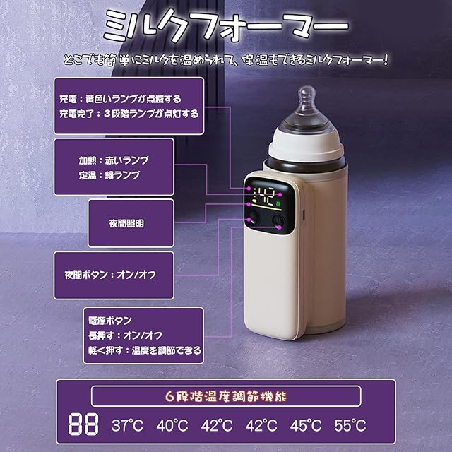 【LCDデジタル表示画面】液晶デジタルディスプレイにより、ミルクの温度を簡単に確認でき、希望の加熱温度を確認できます。これにより、ベビーは常に適温のミルクを飲むことができ、冷たすぎたり熱すぎたりすることはありません