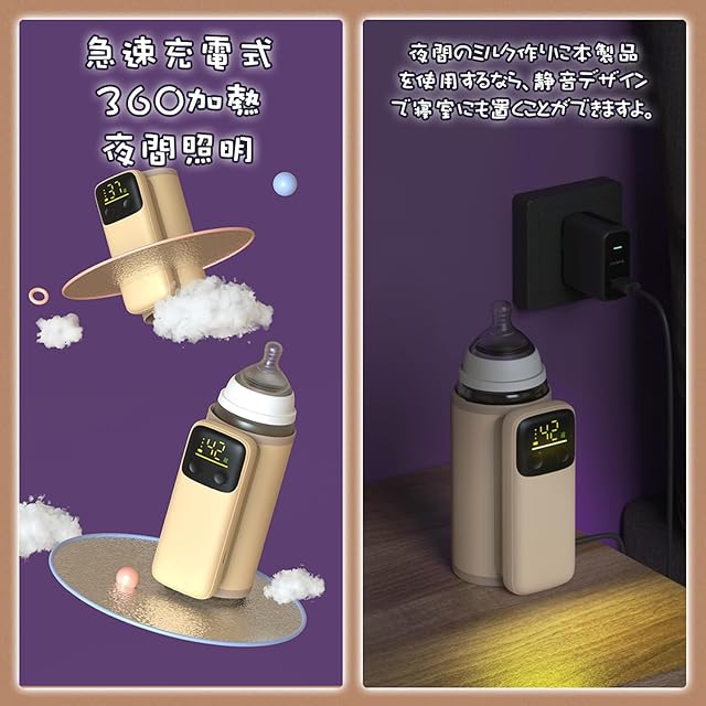 【多用途】ミルクウォーマーはストラップがあり、しかもコンパクトで軽量ので、どこに行っても携帯できます。出先、旅行、出張等様々なシーンに適用、片手で収め、取り扱い便利なボトルウォーマーです
