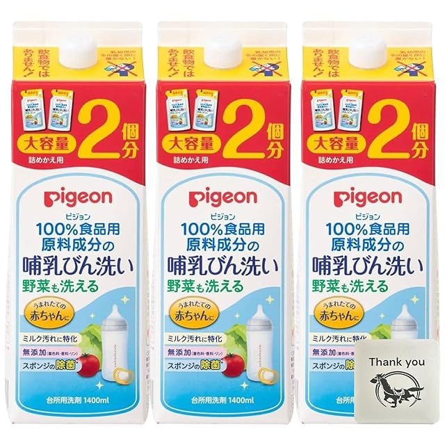ピジョン 哺乳びん洗い 詰め替え 2回分 大容量 1.4L 3個セット + Kunutonnオリジナルロゴ入りおまけ付