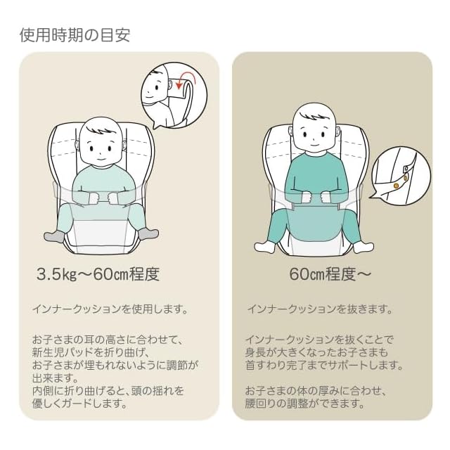 【成長に合わせて使えます】折り曲げることで新生児パッドの高さを調整できます。