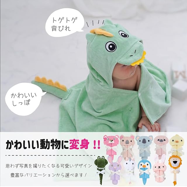 【可愛いデザイン】男の子にも女の子にも人気なしっぽ、お鼻、牙、角・・・など可愛いデザインがいっぱい!赤ちゃんもパット羽織って大変身に大喜び。SNS映えも!