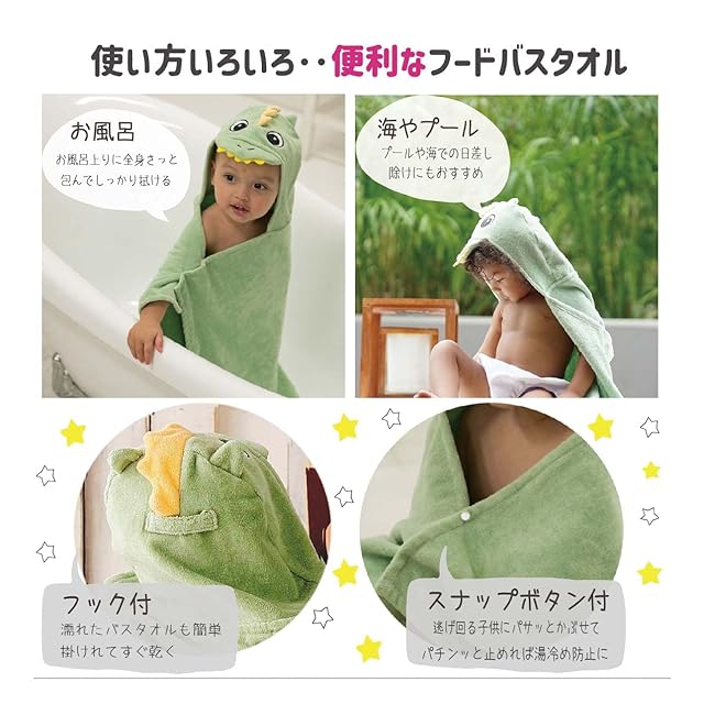 [DEIGO] 出産祝い ベビー バスタオル 恐竜 ザウルス 男の子 赤ちゃん ギフト バスローブ ディーゴ