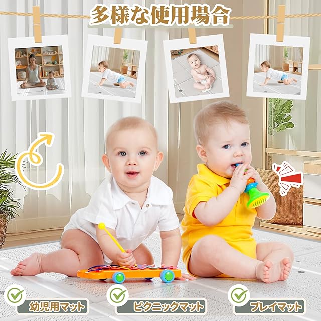 「高品質なXPE素材」:こちらのプレイマットは高品質なXPE素材を採用しており、有害な化学物質を含まない無害・無臭の素材で、柔らかくて弾力性があり、安心してプレイタイムを楽しむことができます。お子供様が歩き始めたり、遊んだりお昼寝したりに最適。ママもヨガや産後エクササイズをすることもおすすめです。