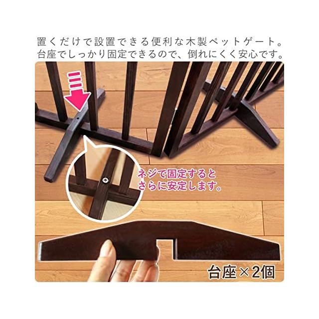 iimono117 木製ゲート 台座付き 折りたたみ ペットゲート [ 高さ 60cm ] ベビーゲート おくだけ設置 自立式 軽量 ゲート ペットフェンス 柵 犬 室内 階段 置き型 (1個)