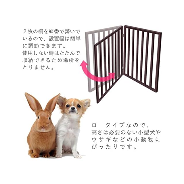 玄関やキッチンへの出入り防止など、ペットに入ってほしくない場所に使用できます。 ロータイプなので、高さの必要ない小型犬やウサギなどの小動物にぴったりです。