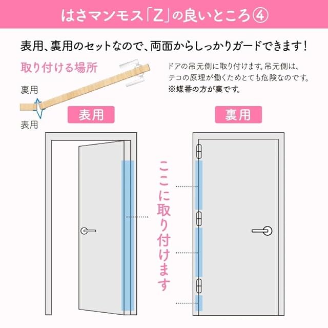 はさマンモスZ(ポストに投函) ドア 指はさみ防止 ドア指ブロック 指はさみ防止 指詰め防止 指挟み防止 赤ちゃん こども ドアストッパー ドアノブ ゆびストッパー ゆびはさみ防止 隙間 すき間 玄関ドア 子供 蝶番 賃貸 扉 カバー (賃貸用120cm表裏セット)