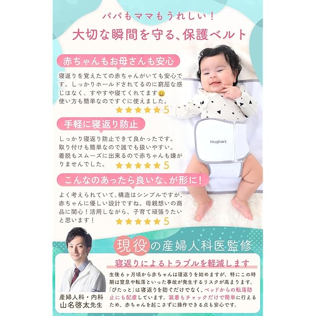 【ひよこクラブ掲載】 寝返り防止 赤ちゃん うつ伏せ防止 【産婦人科医監修xチャックでカンタン着脱】マグハート ぴたっと 寝返り防止ベルト うつ伏せ防止 厚手シーツ Mughart