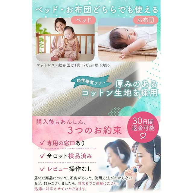 ✅【 ベッド、お布団どちらでも使える 】 1周170cm以下の ベビーマット 、もしくは ベビー用固綿敷布団用 でお使いいただけます。また、厚みのある コットン を採用しているため、ヘタりにくくなっております。※ ベビー用マットレス 、ベビー用固綿敷布団用専用です。他のお布団などでは決して使用しないでください。