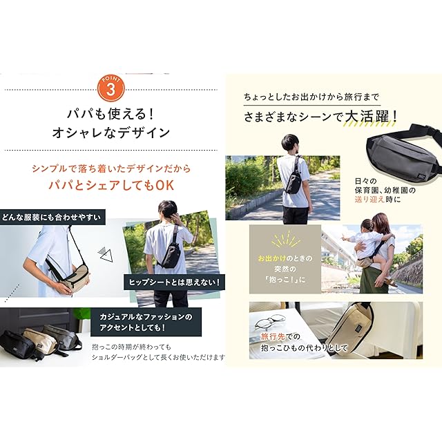 【2WAYで使える】お子様の抱っこをサポートするヒップシートとショルダーバッグを合体し、「抱っこバッグ」が誕生しました!2WAY仕様で普段はショルダーバックとして、お子様が疲れたときはヒップシートとしてお使いいただけます。
