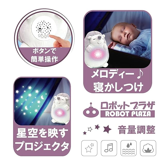 ロボットプラザ(ROBOT PLAZA) 寝かしつけ ぬいぐるみ プラネタリウム メロディー 心音 赤ちゃん 出産祝い おもちゃ 0歳 子供 ベビー (ハリネズミ)