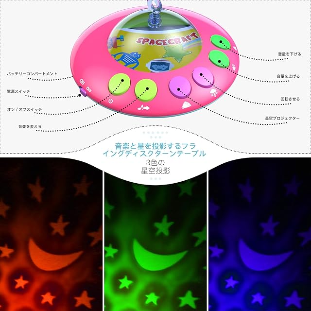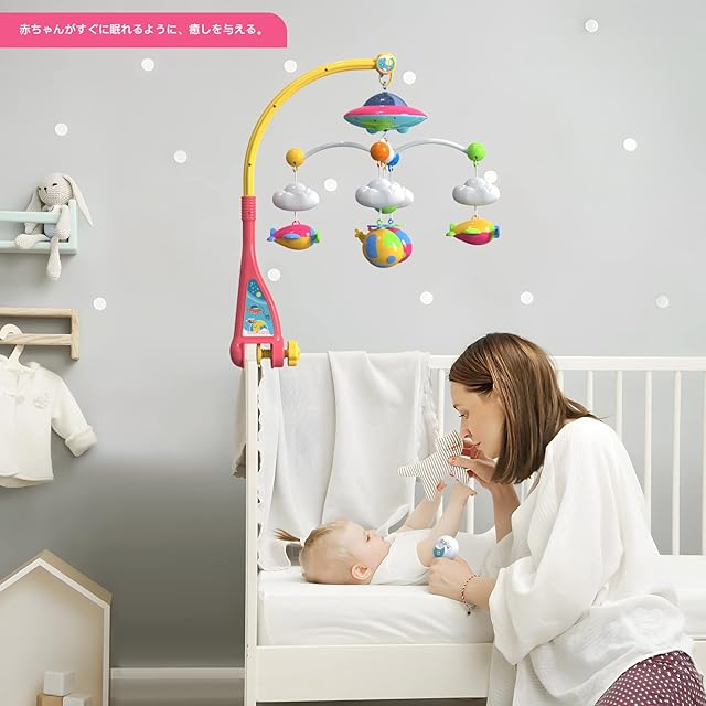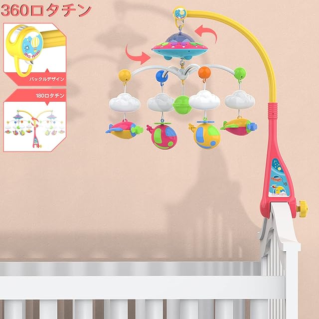 ベビーベッドメリー オルゴール モビール 360度回転 投影 音楽 ベビーベッドおもちゃ 新生児 おもちゃ 知育玩具 赤ちゃん 新生児 贈り物 リモコン付き