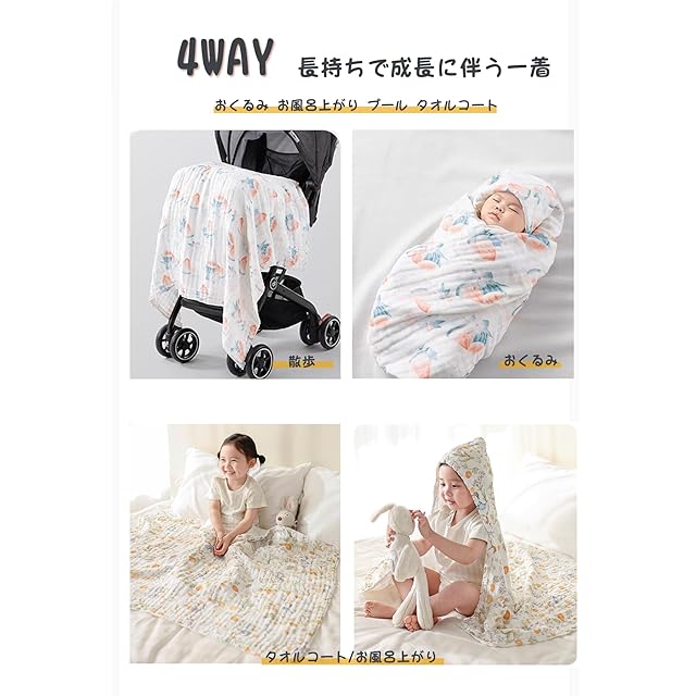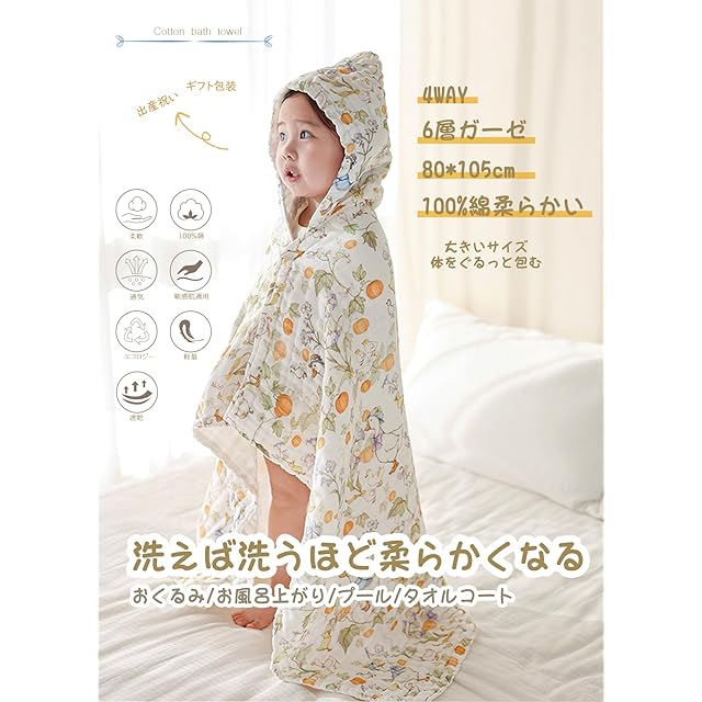 [Coyoohouse] ベビー用バスローブ バスポンチョ タオル 5色 子供 キッズ バスローブ 速乾 綿100% 薄て 男の子 女の子 出産祝い 新生児 お風呂 (魔法の動物園)