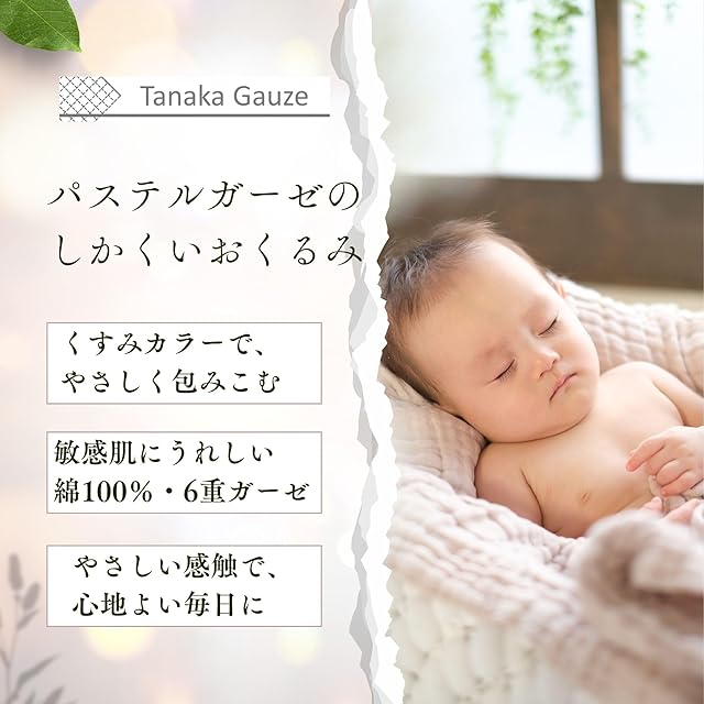 【やさしい肌ざわり】 医療用ガーゼ製造の技術を活かした、ふんわりやわらかな6重ガーゼ。敏感な赤ちゃんの肌にもやさしくなじみます。