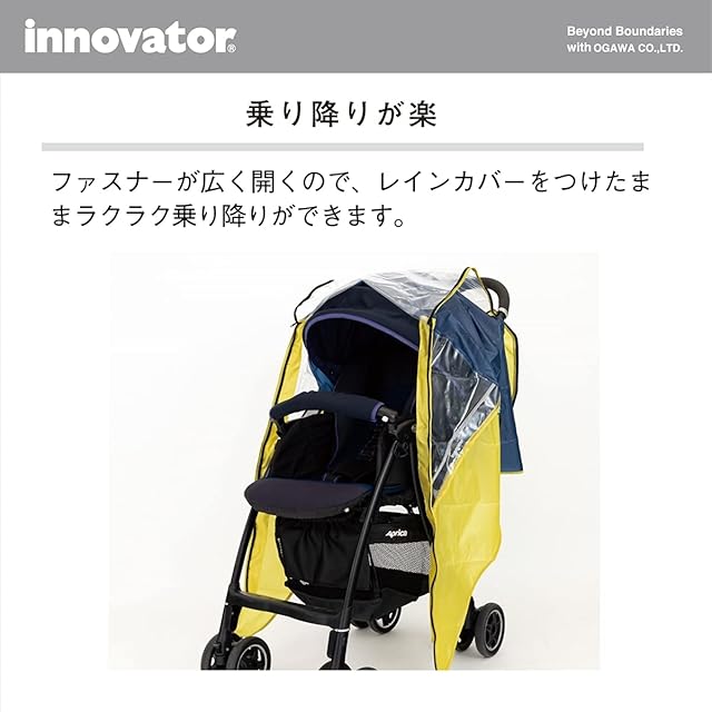 小川(Ogawa) innovator ベビーカーレインカバー ライトブルー×ベージュ A型B型バギー型対応 超はっ水 収納袋付 反射テープ付 雨・風・雪・ホコリ・花粉対策 オールシーズン使えるマルチレインカバー お子さんの表情がわかる透明カバー 18492