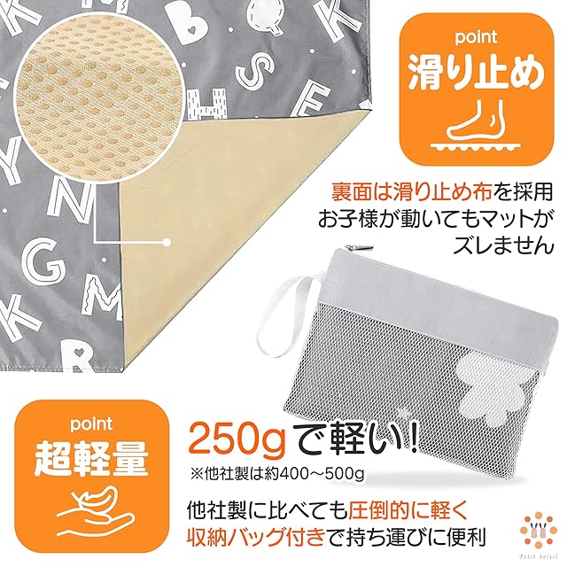 裏面に滑り止め布を採用しているので、お子様が動いてもマットがズレません。