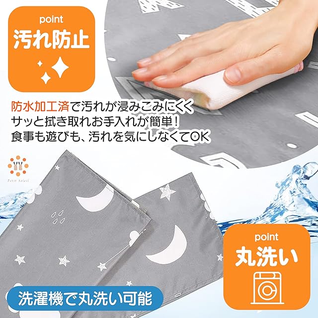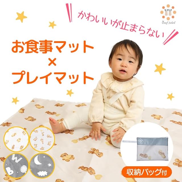 お食事マット プレイマット 食べこぼし 赤ちゃん 子供 滑り止め 撥水加工 洗える 床マットテーブルマット 【Oeuf Soleil】(うさぎ柄)