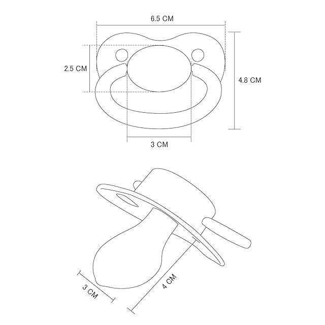 独立のバッケージに2個入。シールド、ニップルは大人のお口に合わせた形とサイズです。乳首サイズ:長さ4CMx幅3CM。シールドサイズ:幅6.5CM×高さ4.8CM。