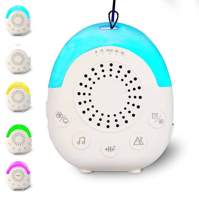 ホワイトノイズマシン 赤ちゃん 寝かしつけ 夜泣き対策 おもちゃ 1000mAhバッテリー内蔵 30種の癒し音 ナイトライト 5種調光可能 吊り下げ タイマー付 Type-C充電 胎内音 オルゴール 新生児 ベビー 用品 泣き止む 出産祝い 睡眠誘導 寝る ホワイトノイズマシン スピーカー