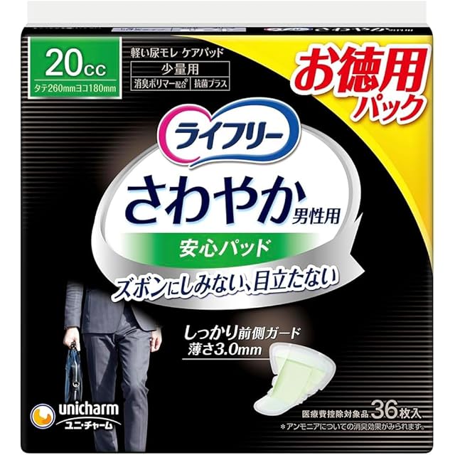 【お徳用パック】ライフリー さわやか男性用 安心パッド 男性用軽度失禁パッド 20cc 少量用 36枚入り 2個セット 軽度失禁パッド 尿漏れ ズボンにしみない 目立たない