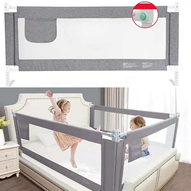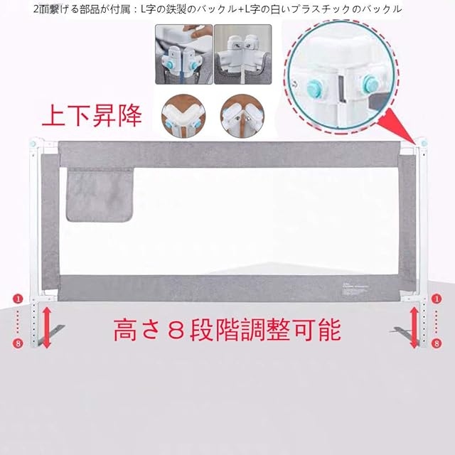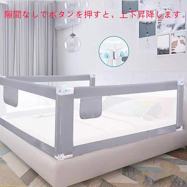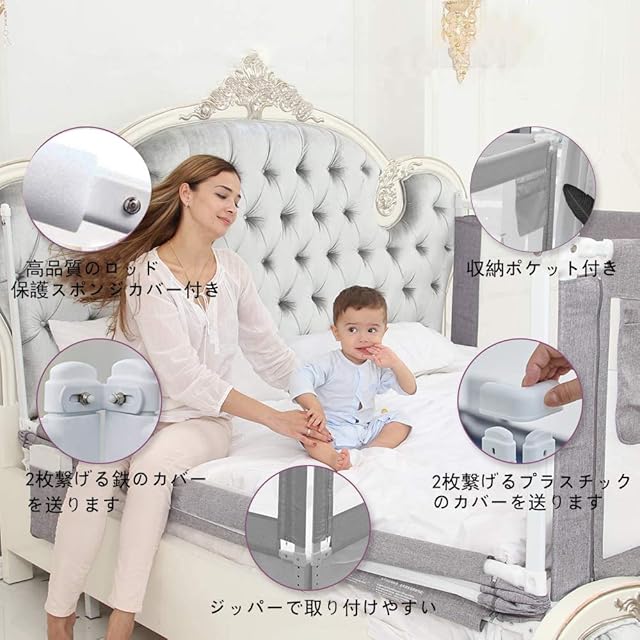 Kadahis ベッドフェンス ベットガード 無添加素材 布団ずれ 蹴り出し お子様のベッドからの 転落防止 取り付け簡単 1枚入り 子供用 出産お祝い 日本語説明書付き (180cm, グレー)