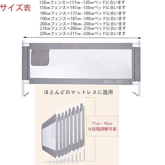 【調節可能な高さ】:マットレスの厚さに従って高さを自由に調節でき、高さ70から93cmまで調整可能です。持ち上がる棒はベッドの側面で坐ることを促進するためにベッドの表面で下げることができ、様々の厚さのマットレスとプラットフォームベッドに対応できます。100cmのフェンスをご購入の場合は以下のリンクをご参照ください。https://www.amazon.co.jp/dp/B0BCD3BYPH