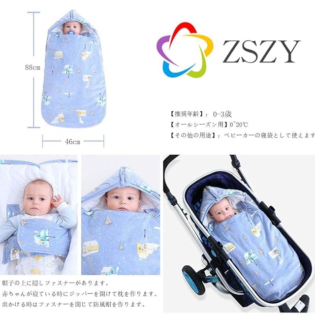 【ZSZY】スリーパー 赤ちゃん 寝袋 ベビー寝袋 おくるみ 新生児 带防風帽 綿100% おむつの交換が便利です 滑り止め 夜泣き対策に 睡眠を改善する 出産準備 出産祝い 退院 男の子 女の子 人気 0-3歳