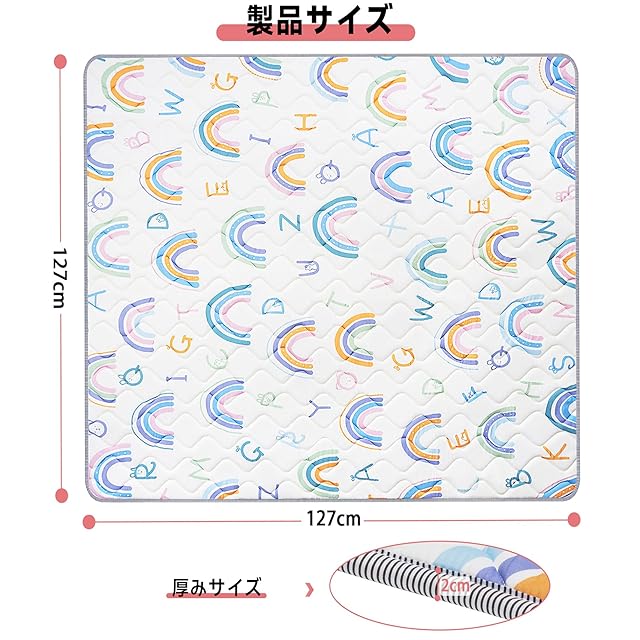 BQKOZFIN プレイマット ベビーマット 127x127x極厚2cm 折りたたみ 安全検査済み 大判 赤ちゃん 子供ゲームパッド 赤ちゃんプレイマット 滑り止め 防音 防水 安全素材 一枚入り(127x127x2cm,虹の図案)